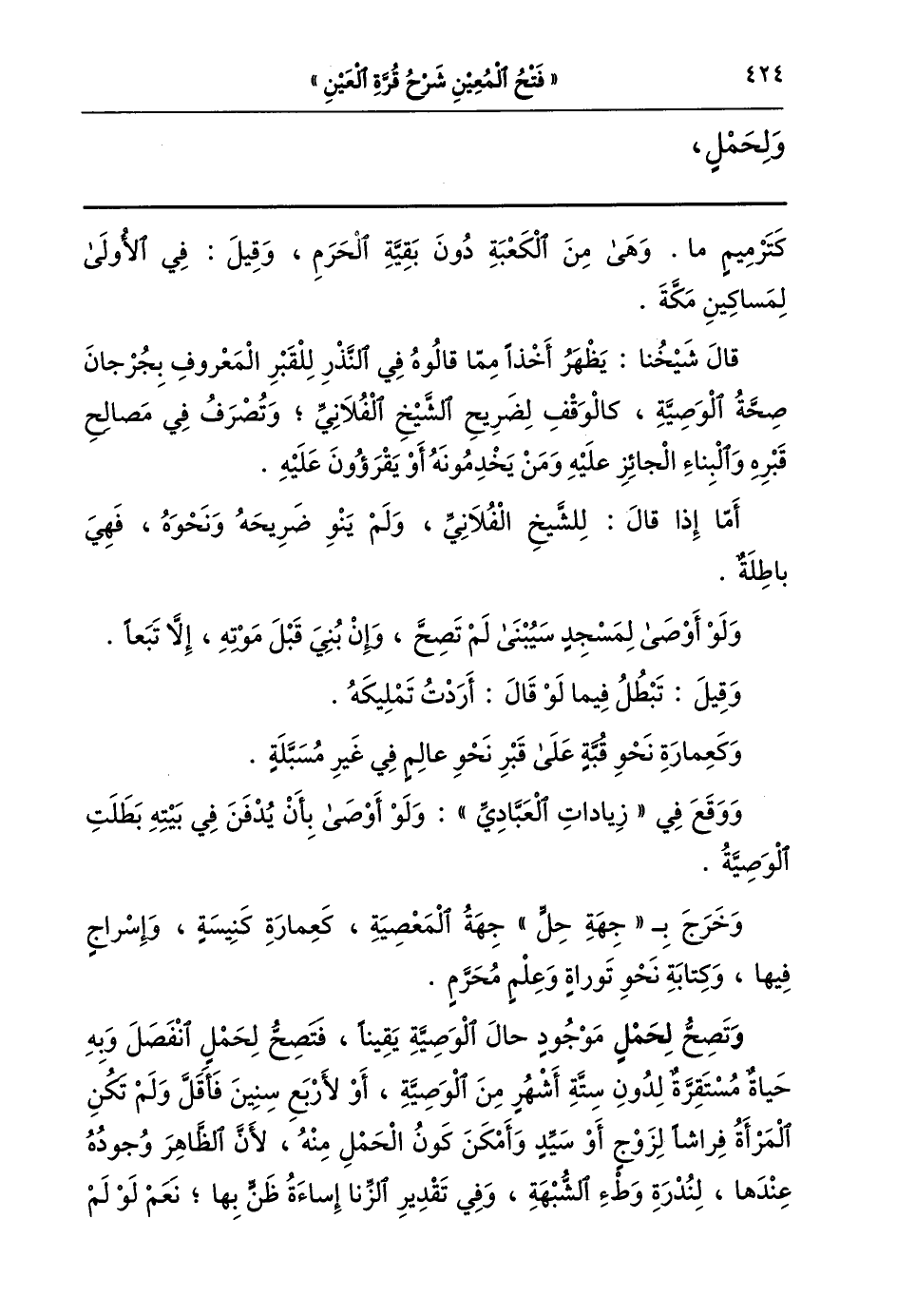 وتصح لحمل موجود حال الوصية يقينا فتصح لحمل انفصل وبه حياة مستقرة لدون ستة أشهر من الوصية أو لأربع سنين فأقل ولم تكن المرأة فراشا لزوج أو سيد وأمكن كون الحمل منه لأن الظاهر وجوده عندها لندرة وطئ الشبهة وفي تقدير الزنا إساءة ظن بها نعم: لو لم