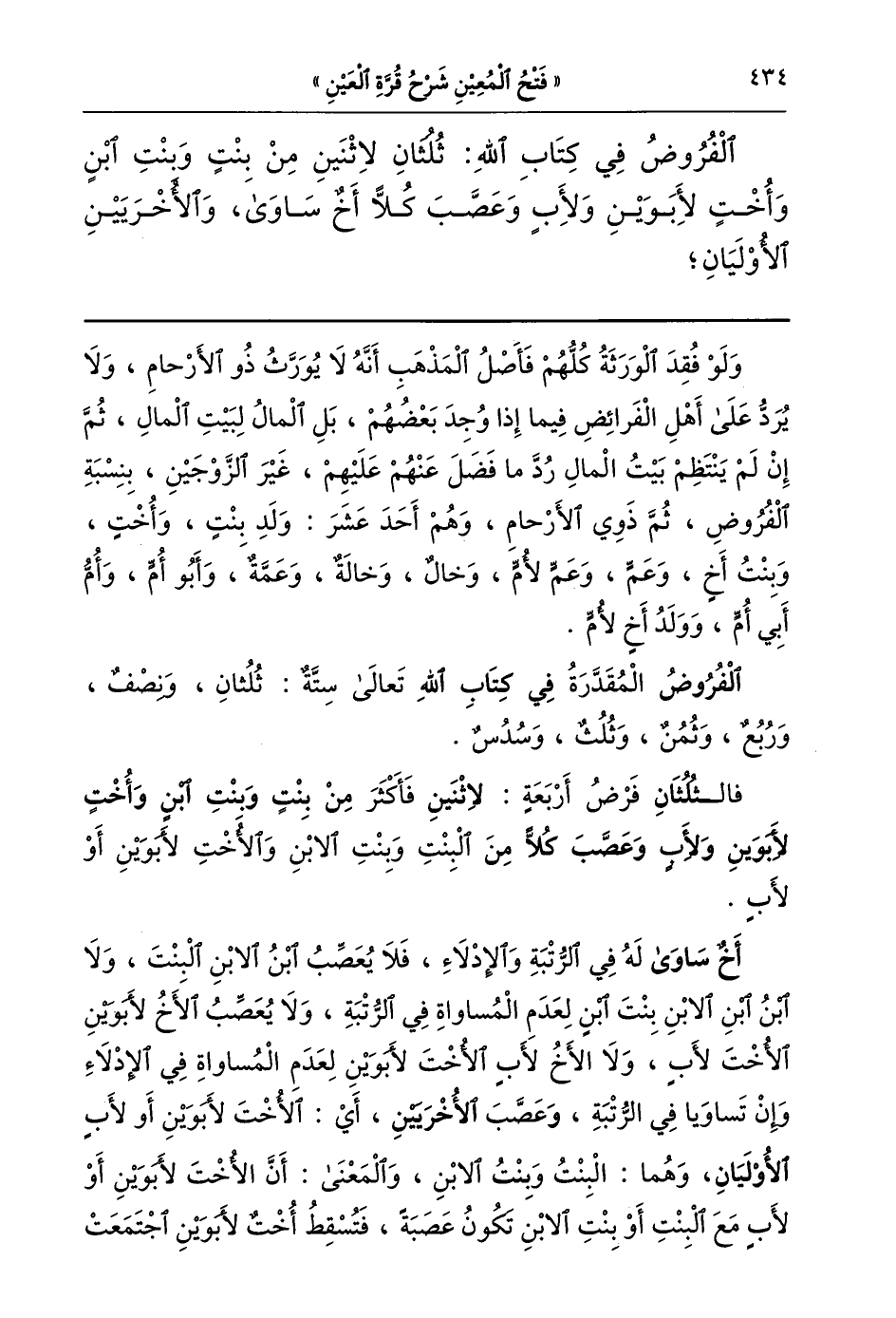 فالثلثان فرض أربعة لاثنين فأكثر من بنت وبنت ابن وأخت لأبوين ولأب وعصب كلا من البنت