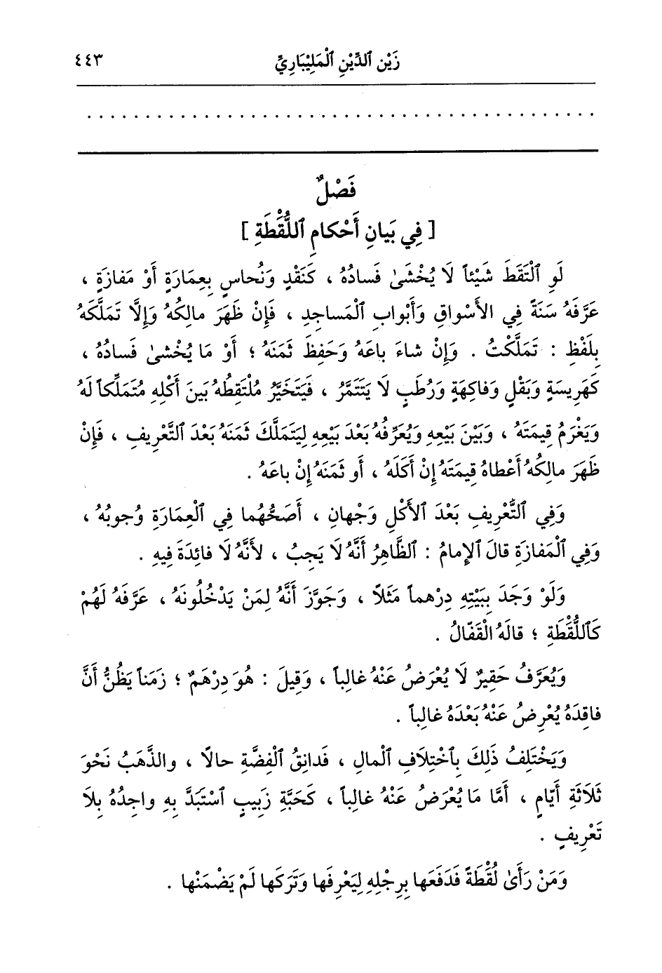 ظهر مالكه وإلا تملكه بلفظ تملكت وإن شاء باعه وحفظ ثمنه أو ما يخشى فساده كهريسة وبقل وفاكهة ورطب لا يتتمر فيتخير ملتقطة بين أكله متملكا له ويغرم قيمته وبين بيعه ويعرفه بعد بيعه ليتملك ثمنه بعد