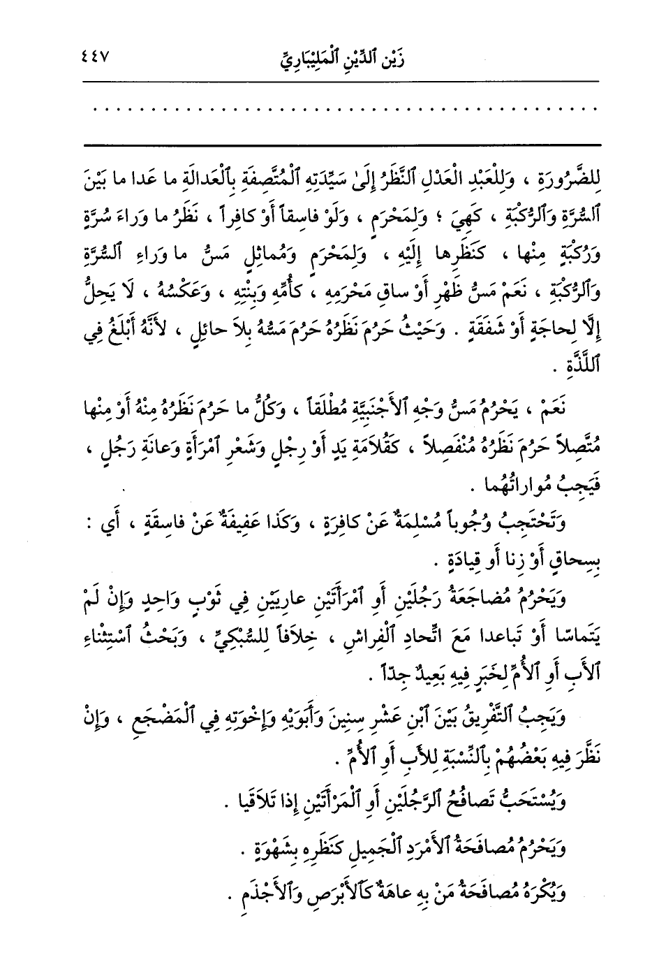 ويجب التفريق بين ابن عشر سنين وأبويه وإخوته في المضجع وإن نظر فيه بعضهم بالنسبة للأب أو الأم.