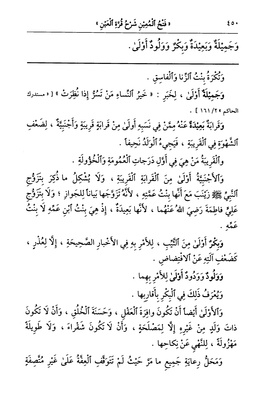 وقرابة بعيدة عنه ممن في نسبه أولى من قرابة قريبة وأجنبية لضعف الشهوة في القريبة فيجئ الولد نحيفا.