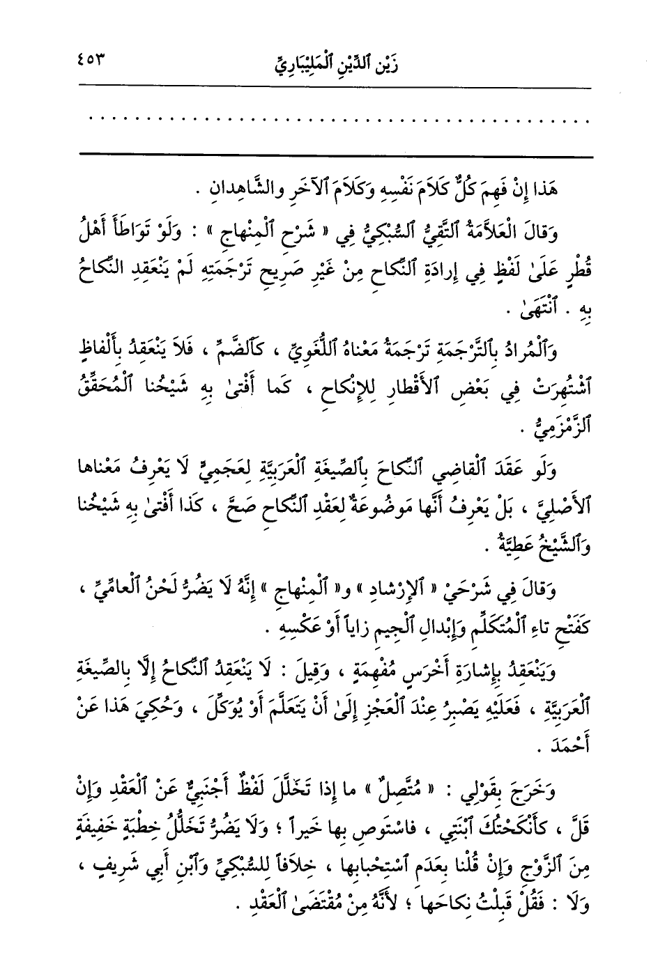 وقال العلامة التقي السبكي في شرح المنهاج: ولو تواطأ أهل قطر على لفظ في إرادة النكاح من غير صريح ترجمته لم ينعقد النكاح به. انتهى.