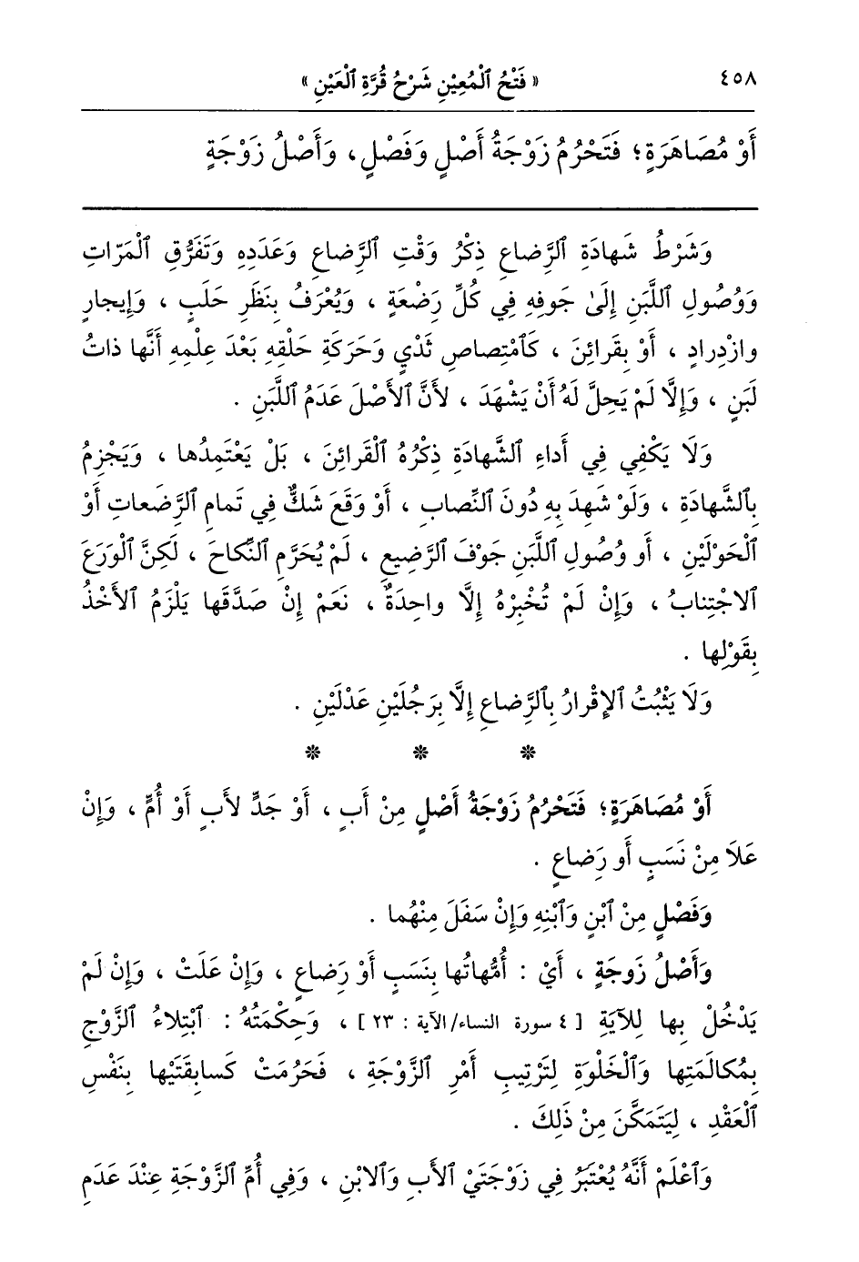 أو مصاهرة فتحرم زوجة أصل وفصل وأصل زوجة