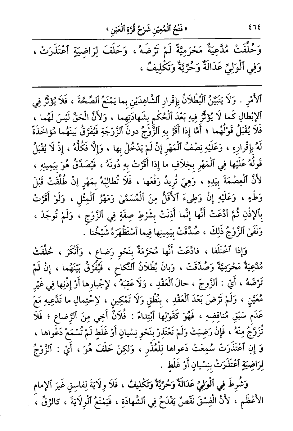وحلفت مدعية محرمية لم ترضه وحلف لراضية اعتذرت وفي الولي عدالة وحرية وتكليف,