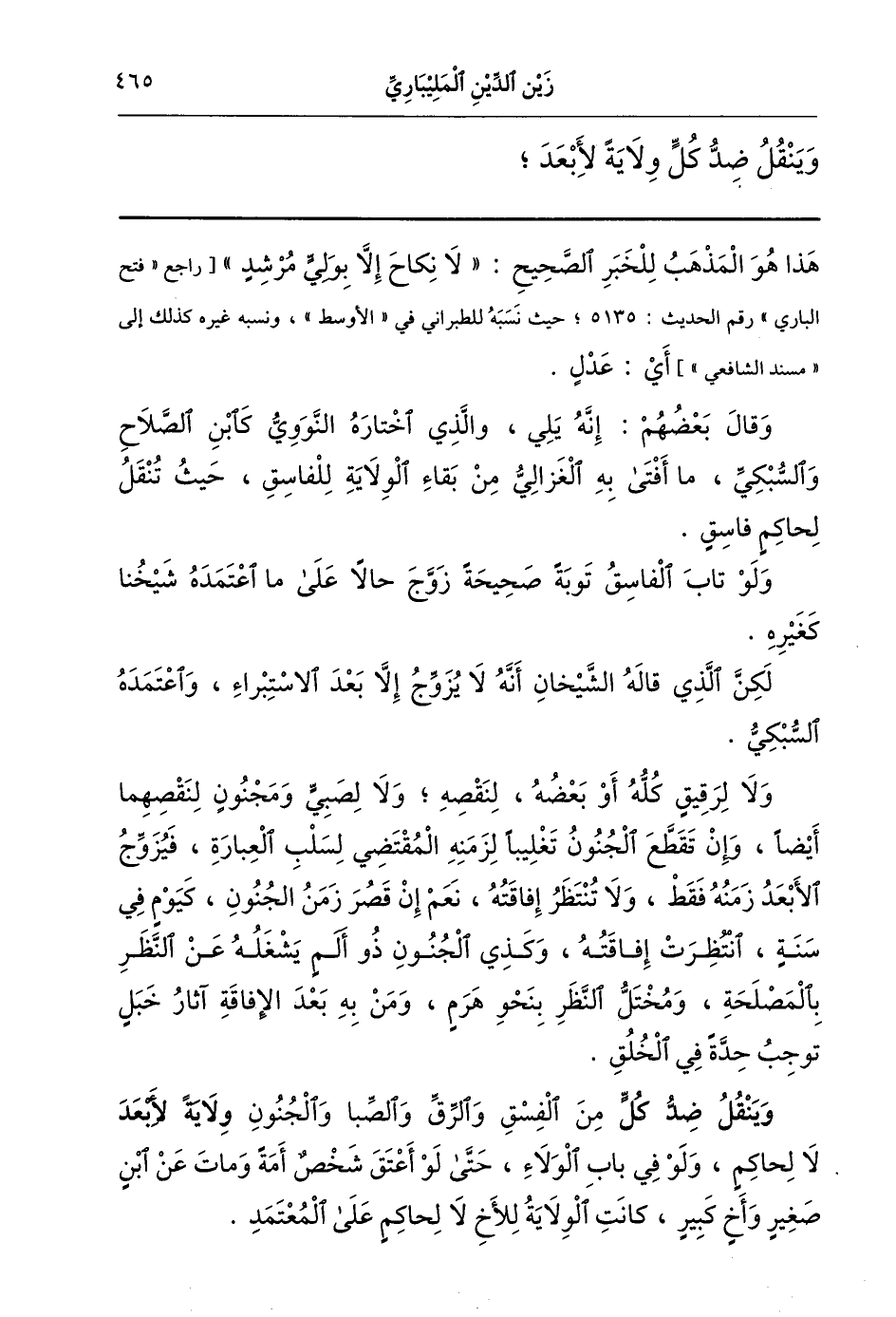 وينقل ضد كل من الفسق والرق والصبا والجنون ولاية لأبعد لا لحاكم ولو في باب الولاء حتى لو أعتق شخص أمة ومات عن ابن صغير وأخ كبير كانت الولاية للأخ لا للحاكم على المعتمد.