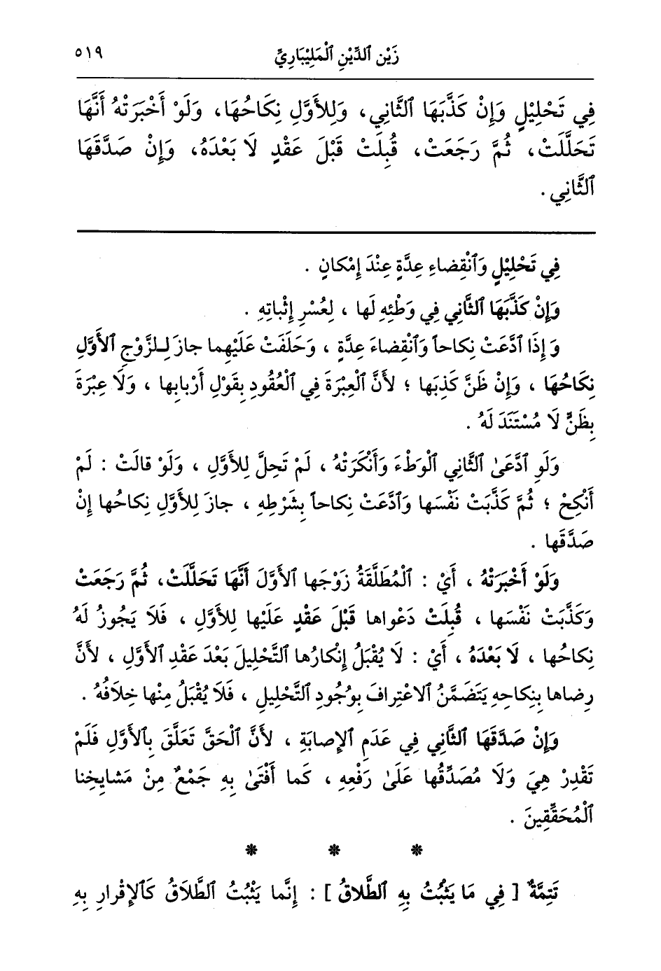في تحليل وانقضاء عدة عند إمكان.
