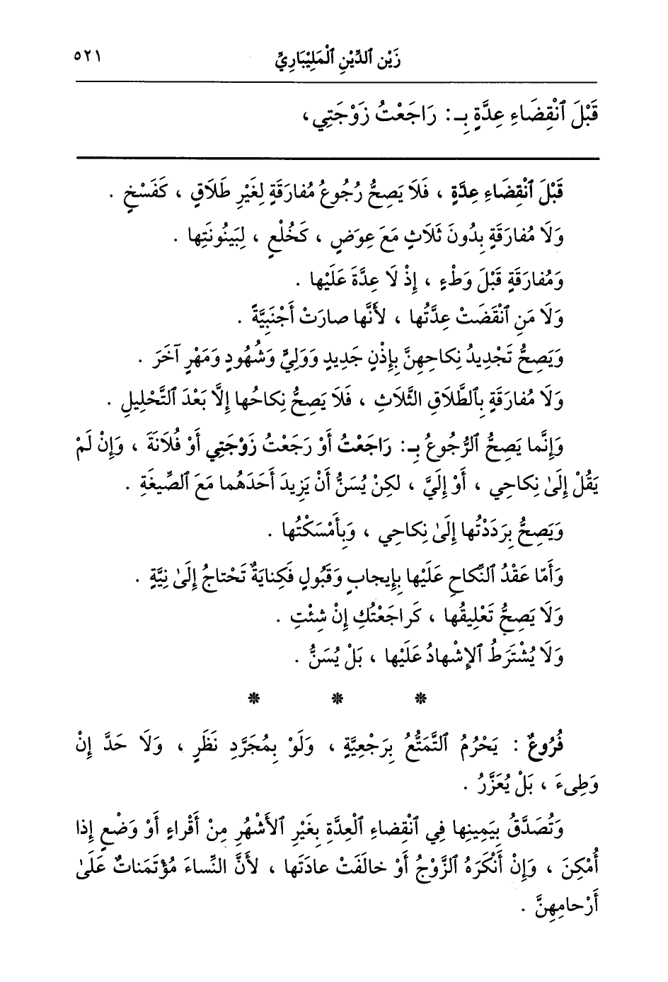 وإنما يصح الرجوع براجعت أو رجعت زوجتي أو فلانة وإن لم يقل: إلي نكاحي أو إلي لكن يسن أن يزيد أحدهما مع الصيغة.