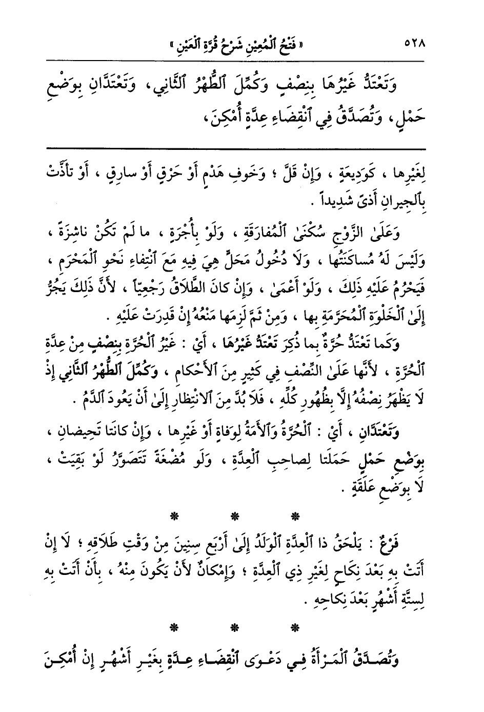فرع: يلحق ذا العدة الولد إلى أربع سنين موقت طلاقه لا إن أتت به بعد نكاح لغير ذي العدة وإمكان