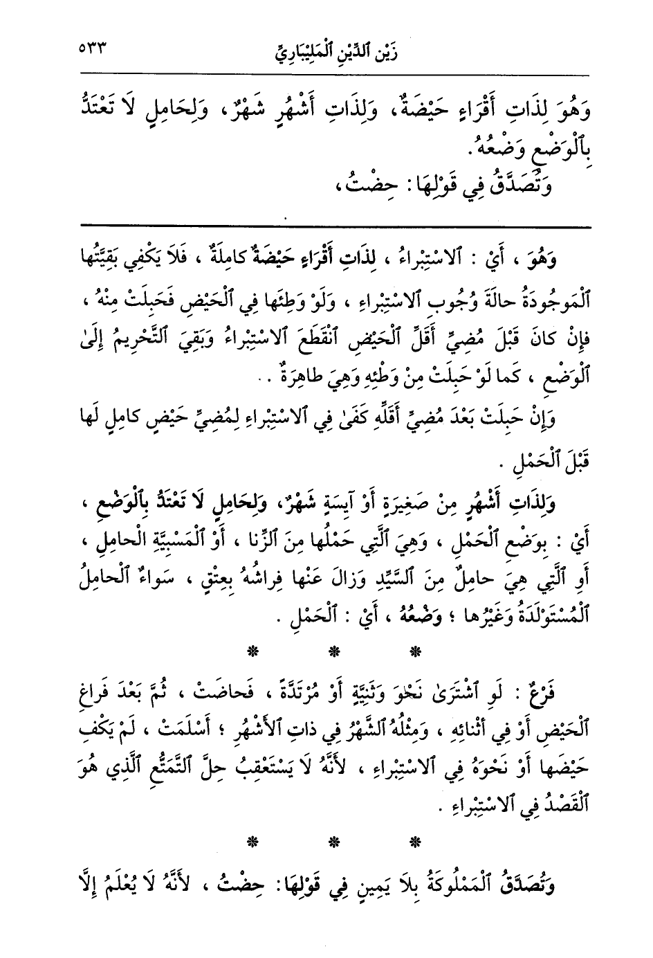 فرع: لو اشترى نحو وثنية أو مرتدة فحاضت ثم بعد فراغ الحيض أو في أثنائه ومثله الشهر في ذات الأشهر أسلمت لم يكف حيضها أو نحوه في الاستبراء لأنه لا يستعقب حل التمتع الذي هو القصد في الاستبراء. وتصدق المملوكة بلا يمين في قولها حضت لأنه لا يعلم إلا