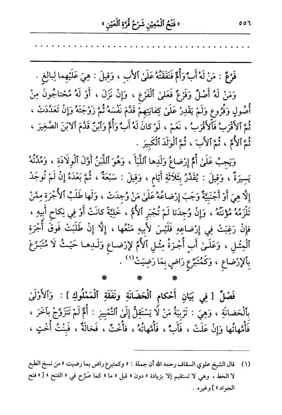 فصل [في بيان أحكام الحضانة ونفقة المملوك]