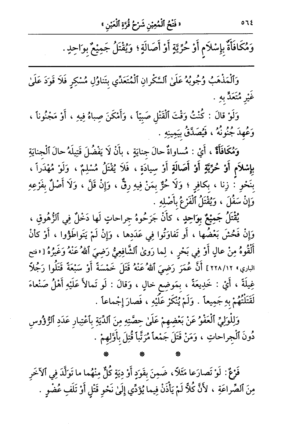 ومكافأة بإسلام أو حرية أو أصالة ويقتل جميع بواحد.