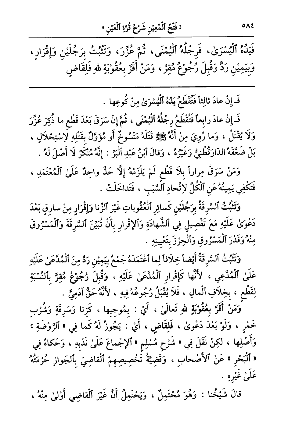 وتثبت السرقة أيضا خلافا لما اعتمده جمع بيمين رد من المدعى عليه على المدعي لأنها كإقرار المدعى عليه وقبل رجوع مقر بالنسبة لقطع بخلاف المال فلا يقبل رجوعه فيه لأنه حق آدمي.