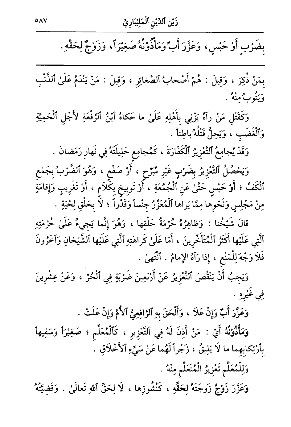 وعزر زوج زوجته لحقه كنشوزها لا لحق الله تعالى وقضيته