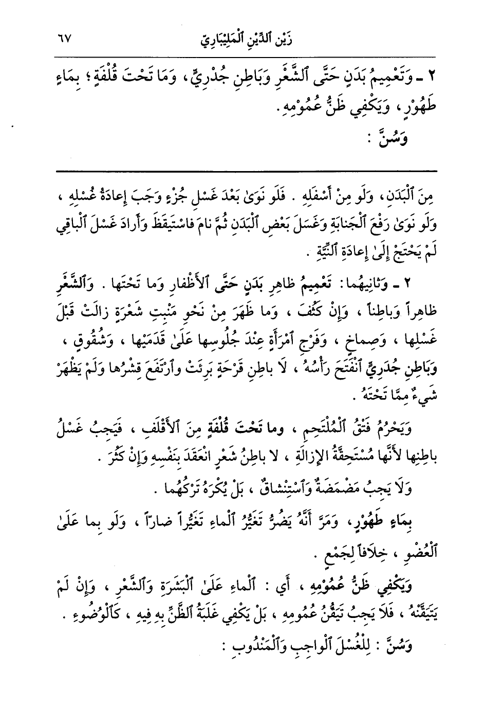2- وتعميم بدن حتى الشعر وباطن جدري وما تحت قلفة بماء طهور ويكفي ظن عمومه.