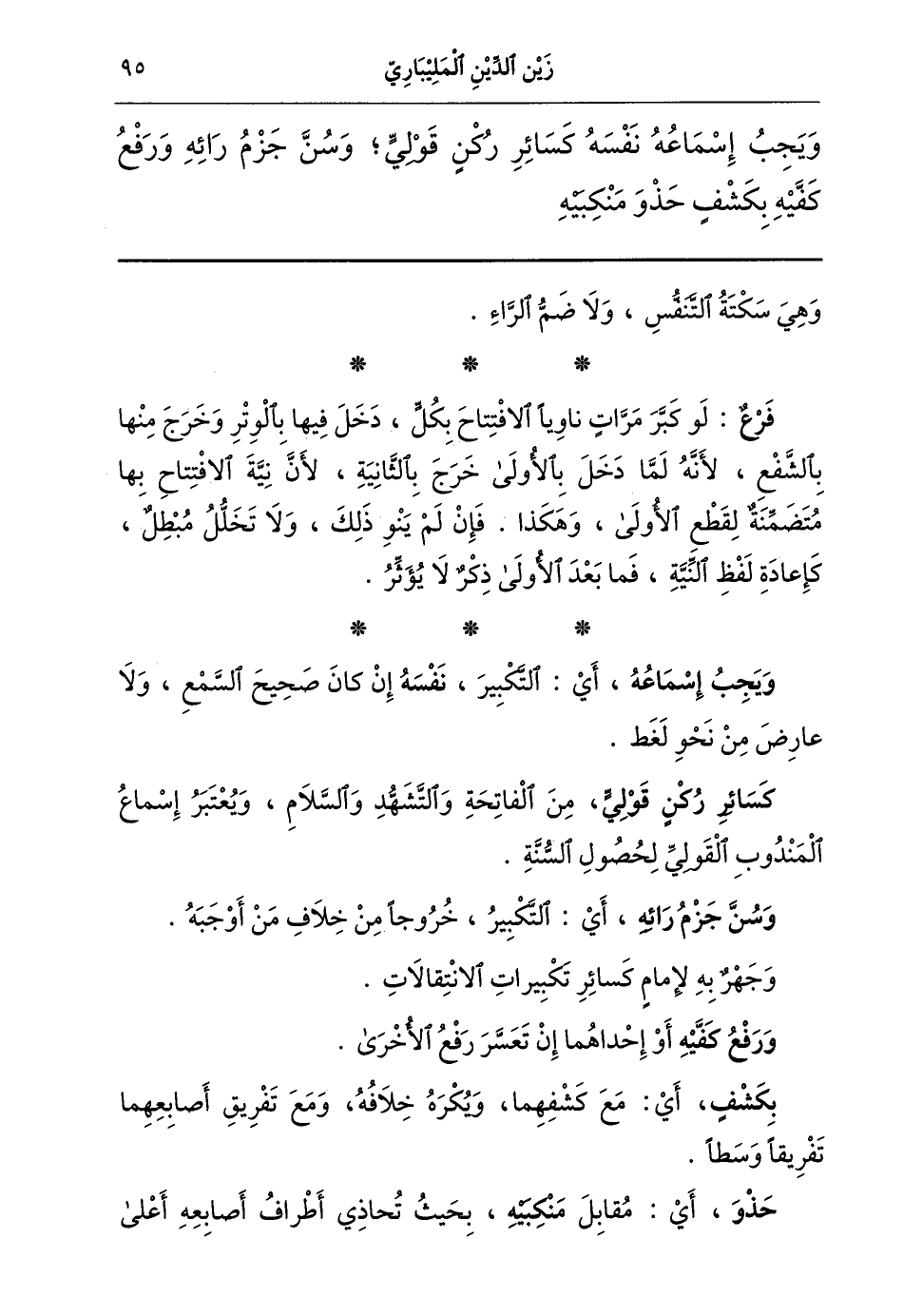 ويجب إسماعه نفسه كسائر ركن قولي وسن جزم رائه ورفع كفيه بكشف حذو منكبيه