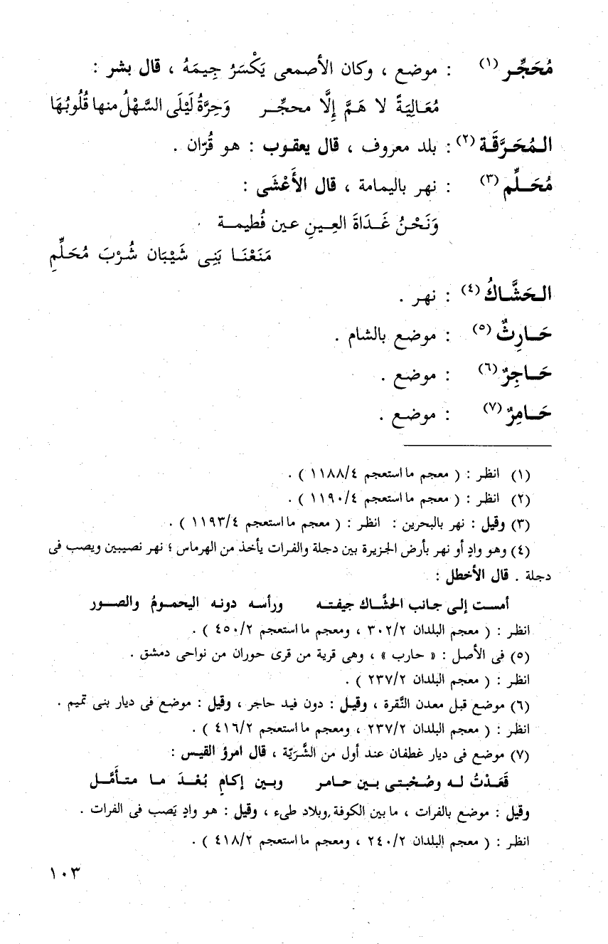 مُحجِّرة: موضع وكان الاصمعي بسر جيمه قال بشر: