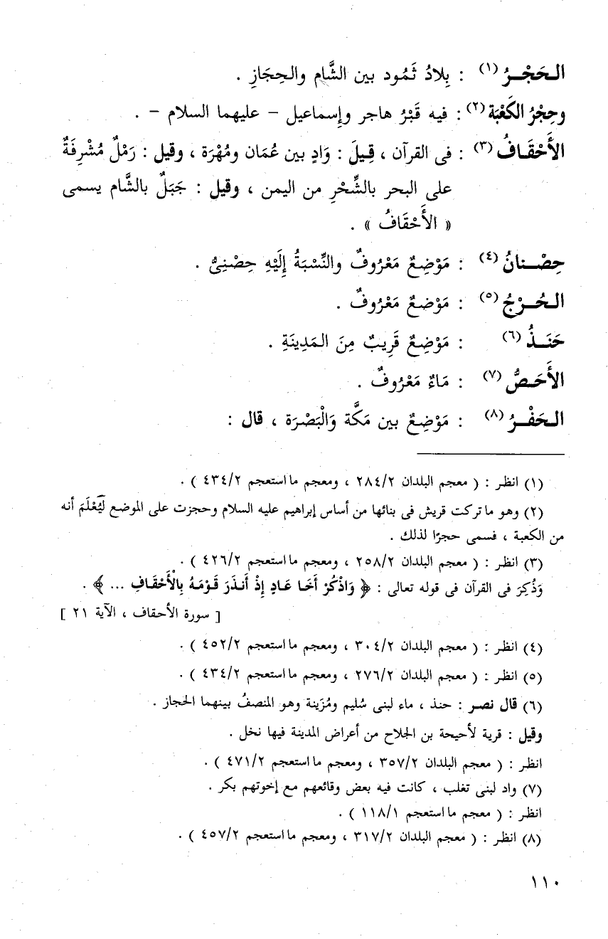 الحَجْر: بلاد ثمود بين الشام والحجاز، وحجر الكعبة فيه قبر هاجر واسماعيل.