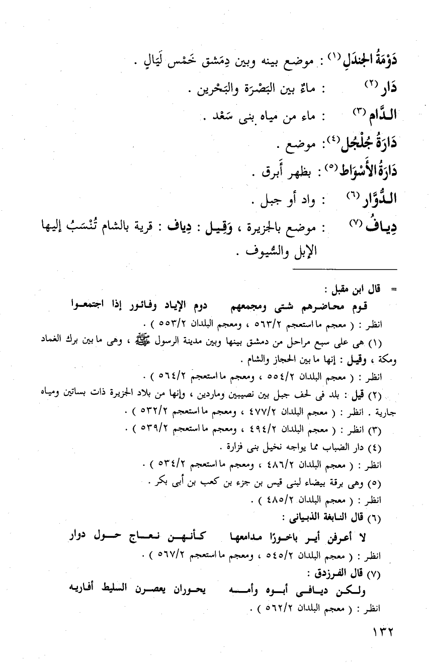 دومة الجندل: موضع بينه وبين دمشق خمس اميال.