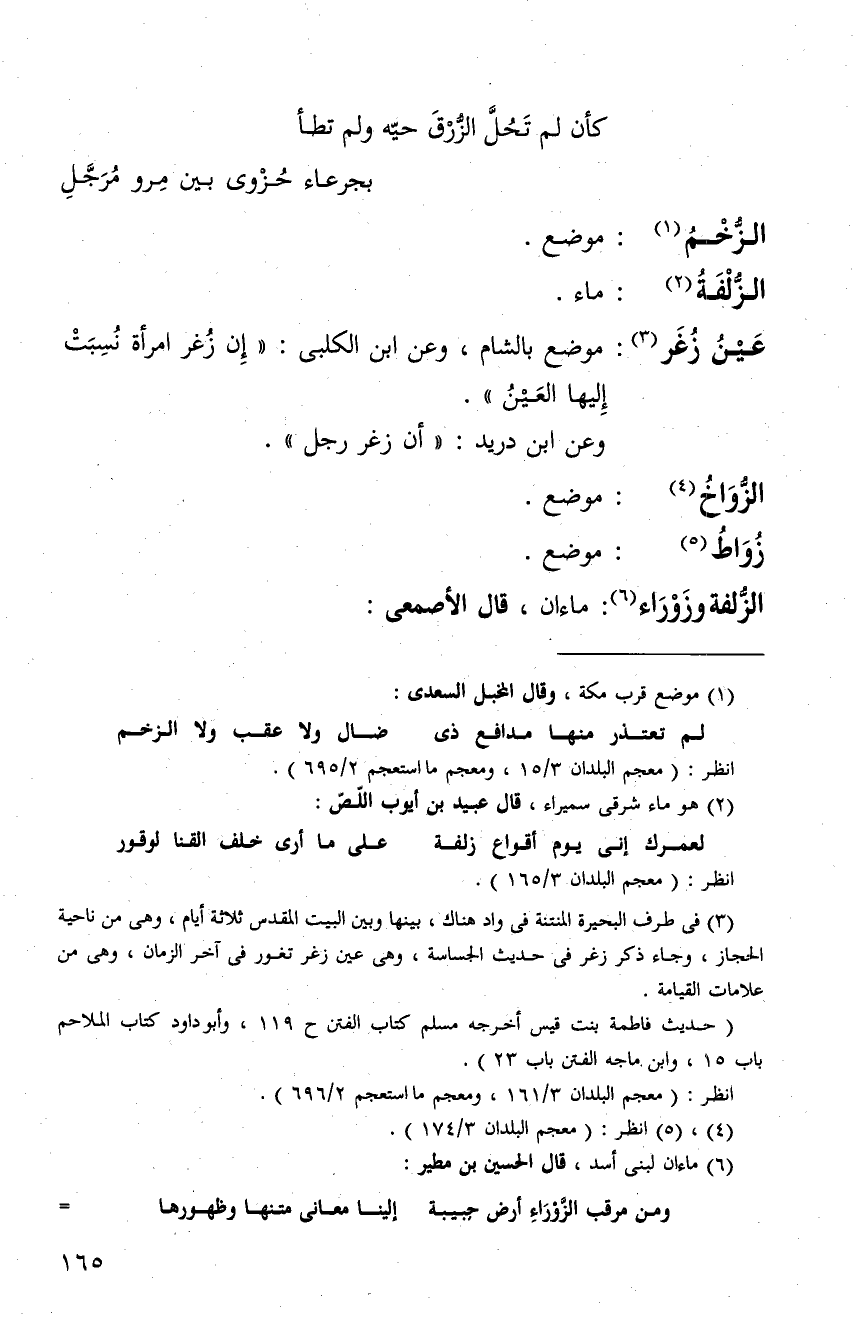 الزُلفة وزوراء: ماءان، أنشد الاصمعي:
