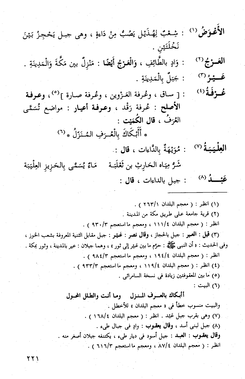 عُرْفة: ساق، وعُرفة العَزْوين، وعُرفة صارة وعرُفة الأملح، عُرفْة رَقْد، وعرفة أعيار: مواضع تسمى العُرَف، قال الكميت: " أأبكاك بالعُرَفِ المنزلُ ".