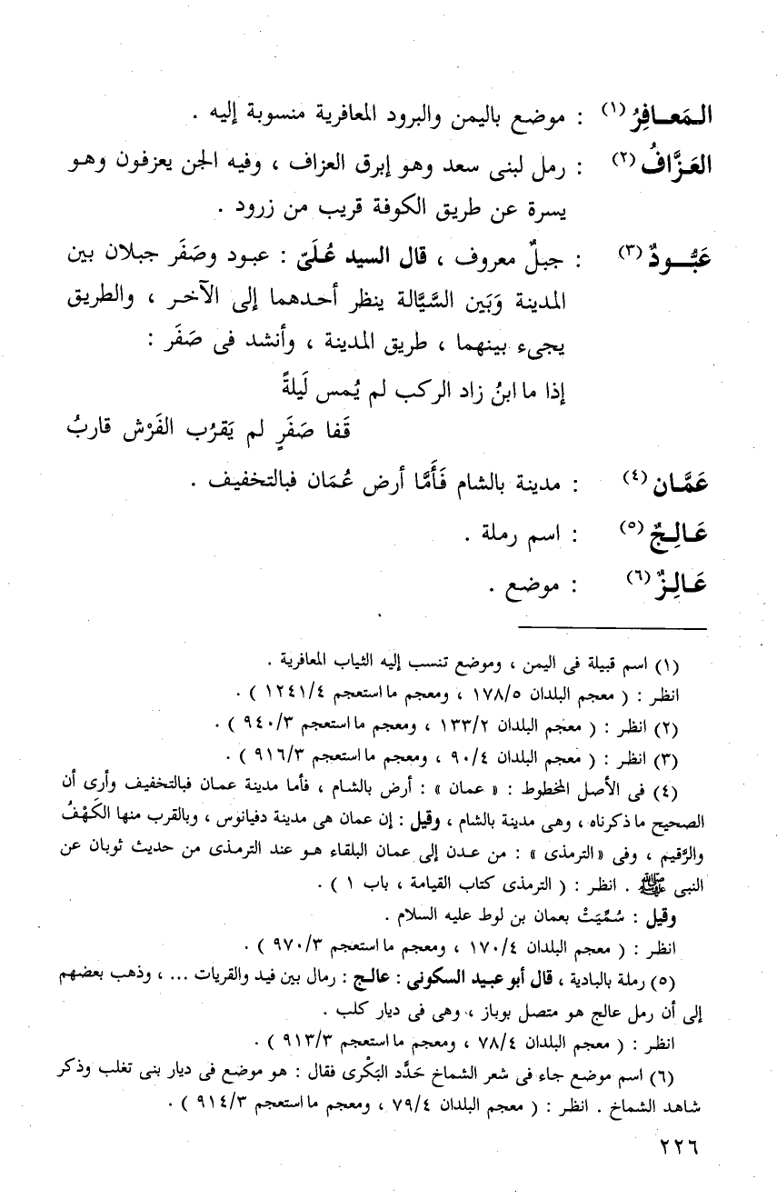 عبود: جبل معروف، قال السيد علي: عبود وصفر جبلان بين المدينة والسَيَّالة ينظر أحدهما الى الأخر، والطريق يجيء بينهما، طريق المدينة، ة أنشد في صفر: