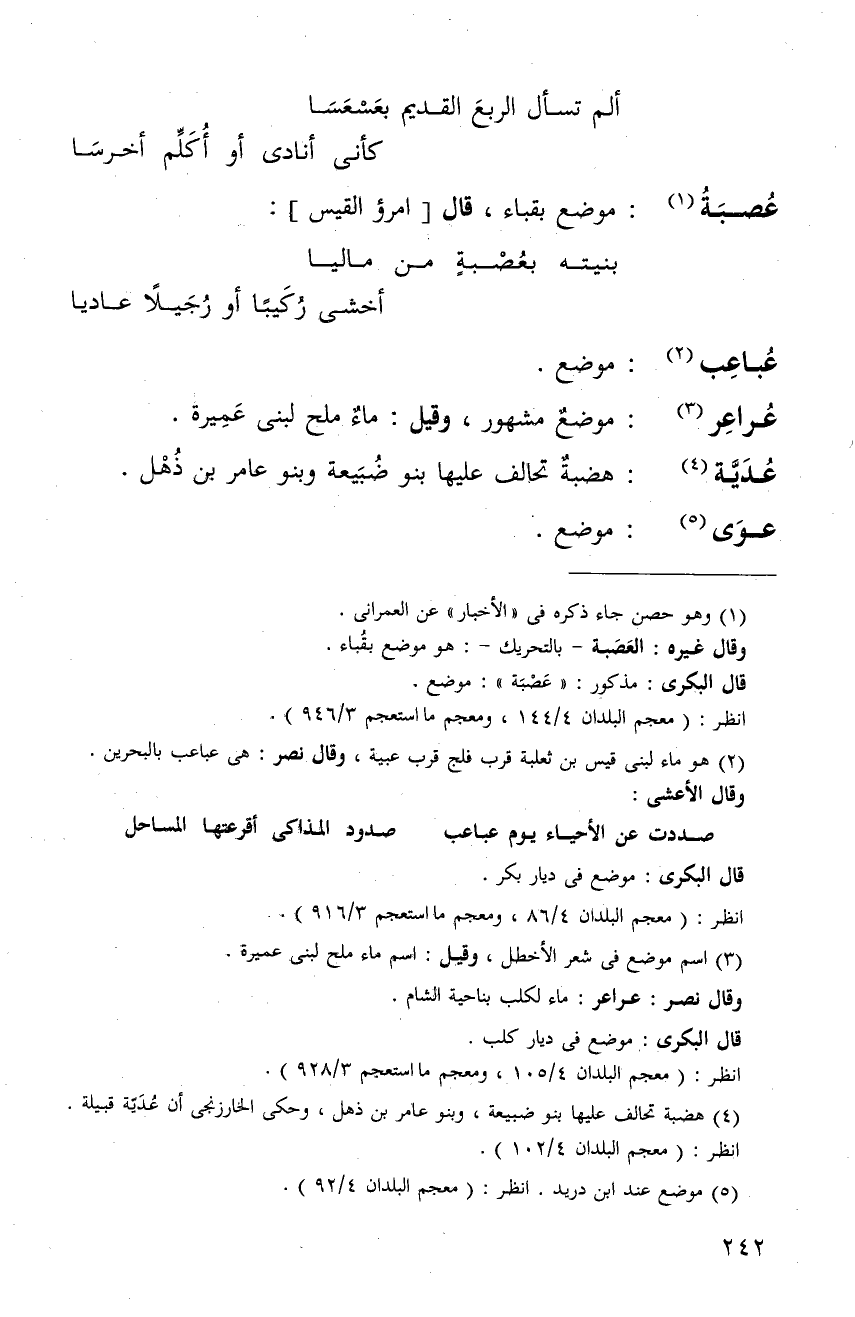 ألم تسأل الربع القديم بعَسْعَسَا ... كأني أنادي أو أكلمُ أخرَساً