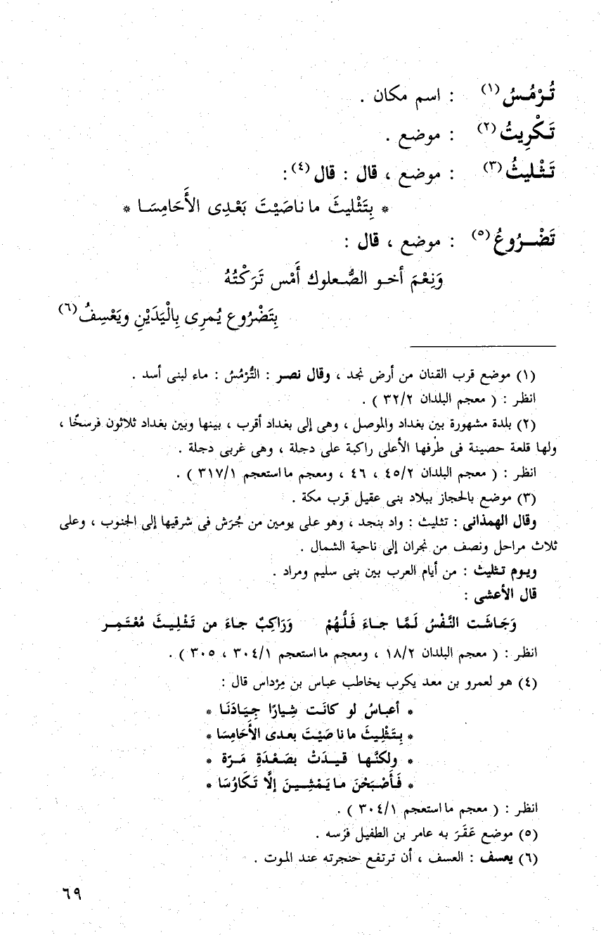 تَثليث: موضع، قال: قال عمرو بن معد يكرب: بتثليث ما ناصيت بعدي الاحامسا.