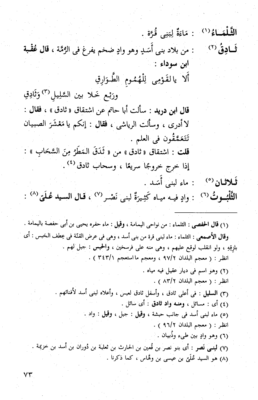 قلت: اشتقاق " ثادق " من " ثدق المطر من السحاب " اذا خرج خروجاً سريعاً، وسحاب ثادق ووادٍ ثادق أي سائل.