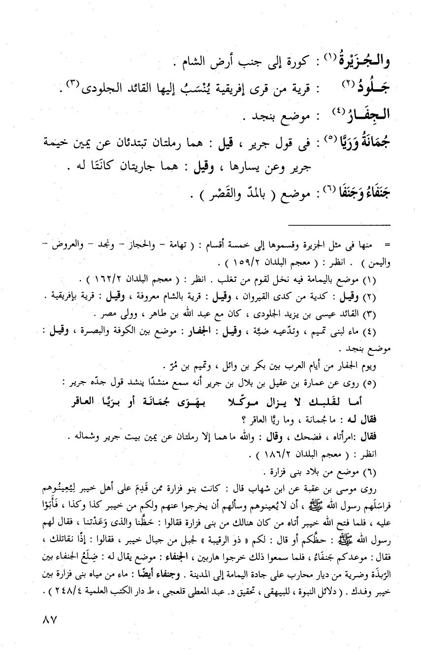 جُمانة وريّا: في قول جرير، قيل هما رملتان تبتدئان عن يمين خيمة جرير وعن يسارها وقيل هما جاريتان كانتا له.
