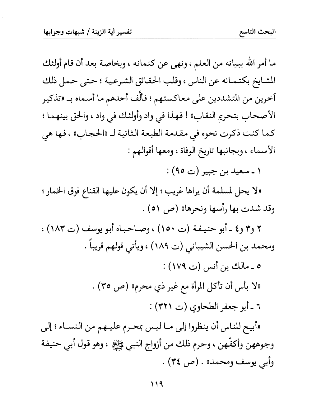 أبيح للناس أن ينظروا إلى ما ليس بمحرم عليهم من النساء إلى وجوههن وأكفهن وحرم ذلك من أزواج النبي A وهو قول أبي حنيفة وأبي يوسف ومحمد