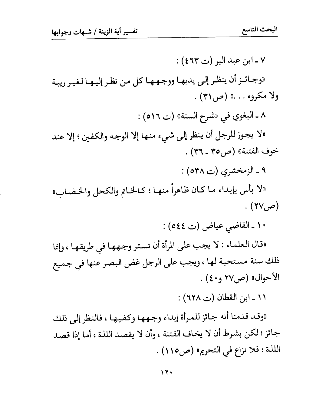 قولنا وقول جماعة من الشافعية وغيرهم: إن النظر إلى الأجنبية من غير شهوة ولا خلوة فلا ينبغي الإنكار عليهن إذا كشفن عن وجوههن في الطريق