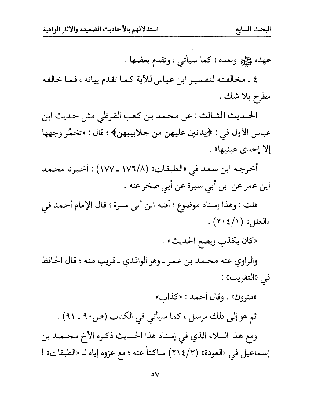 ومع هذا البلاء الذي في إسناد هذا الحديث ذكره الأخ محمد بن إسماعيل في " العودة " (3 / 214) ساكتا عنه مع عزوه إياه ل " الطبقات "