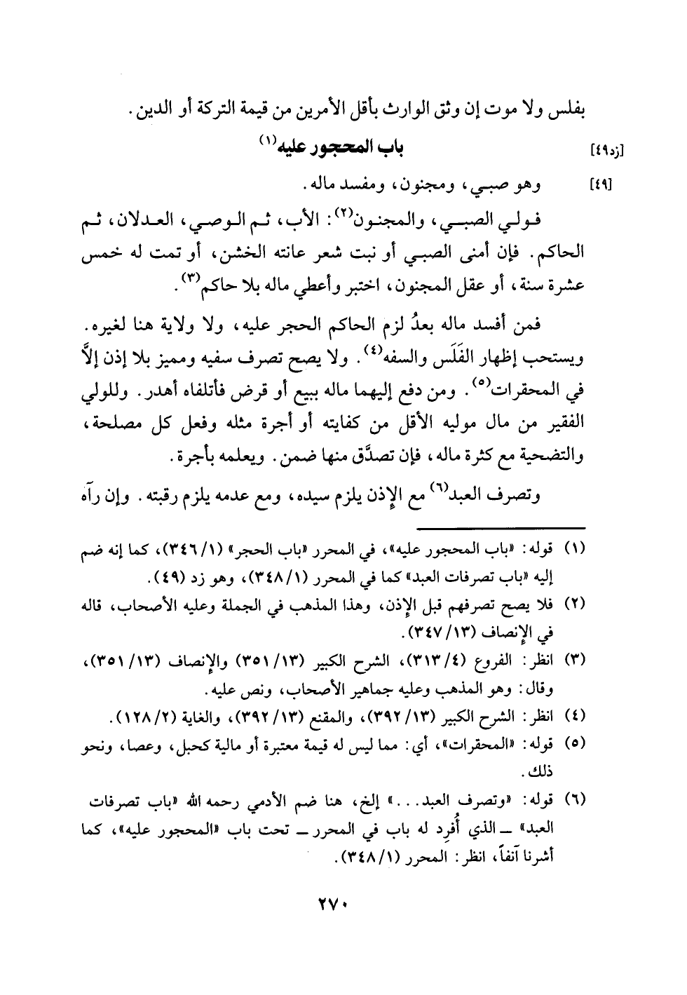 (¬1) قوله: "باب المحجور عليه"، في المحرر "باب الحجر" (1/ 346)، كما إنه ضم إليه "باب تصرفات العبد" كما في المحرر (1/ 348)، وهو زد (49).