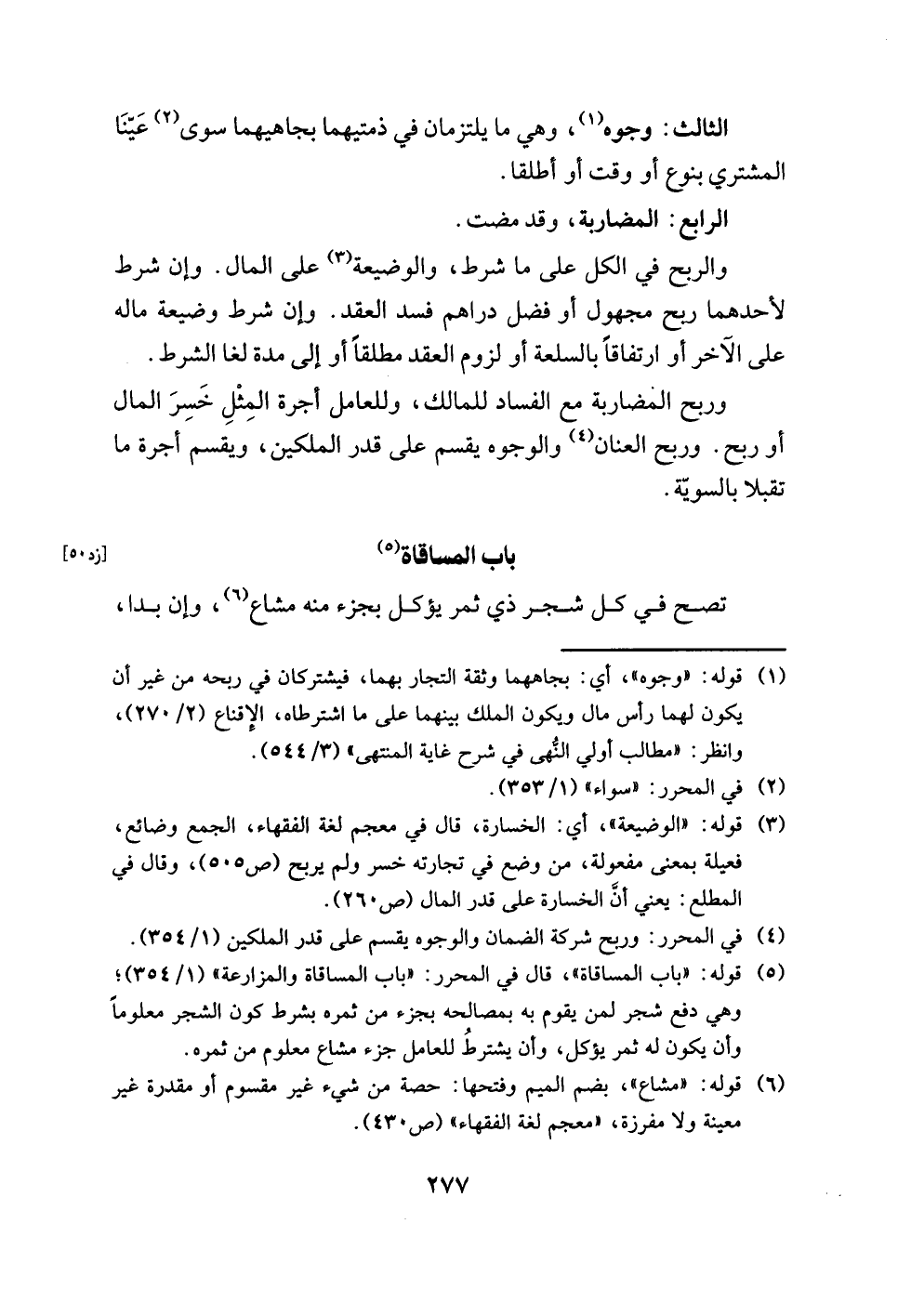 (¬1) قوله: "وجوه"، أي: بجاههما وثقة التجار بهما، فيشتركان في ربحه من غير أن يكون لهما رأس مال ويكون الملك بينهما على ما اشترطاه، الإِقناع (2/ 270)، وانظر: "مطالب أولي النهى في شرح غاية المنتهى" (3/ 544).