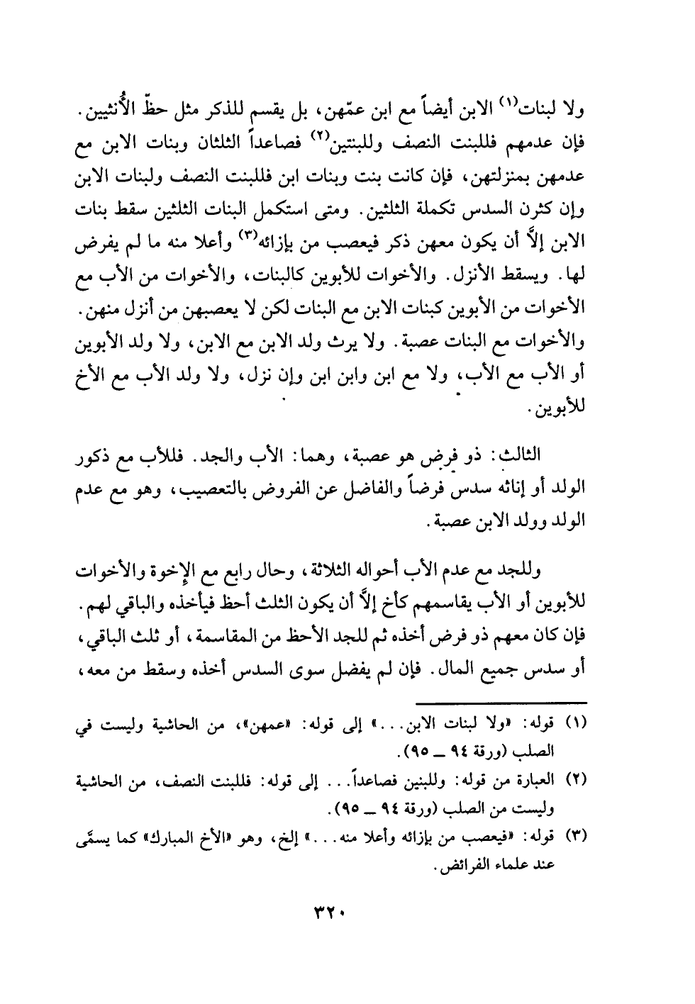 (¬2) العبارة من قوله: وللبنين فصاعدًا. . . إلى قوله: فللبنت النصف، من الحاشية وليست من الصلب (ورقة 94 - 95).
