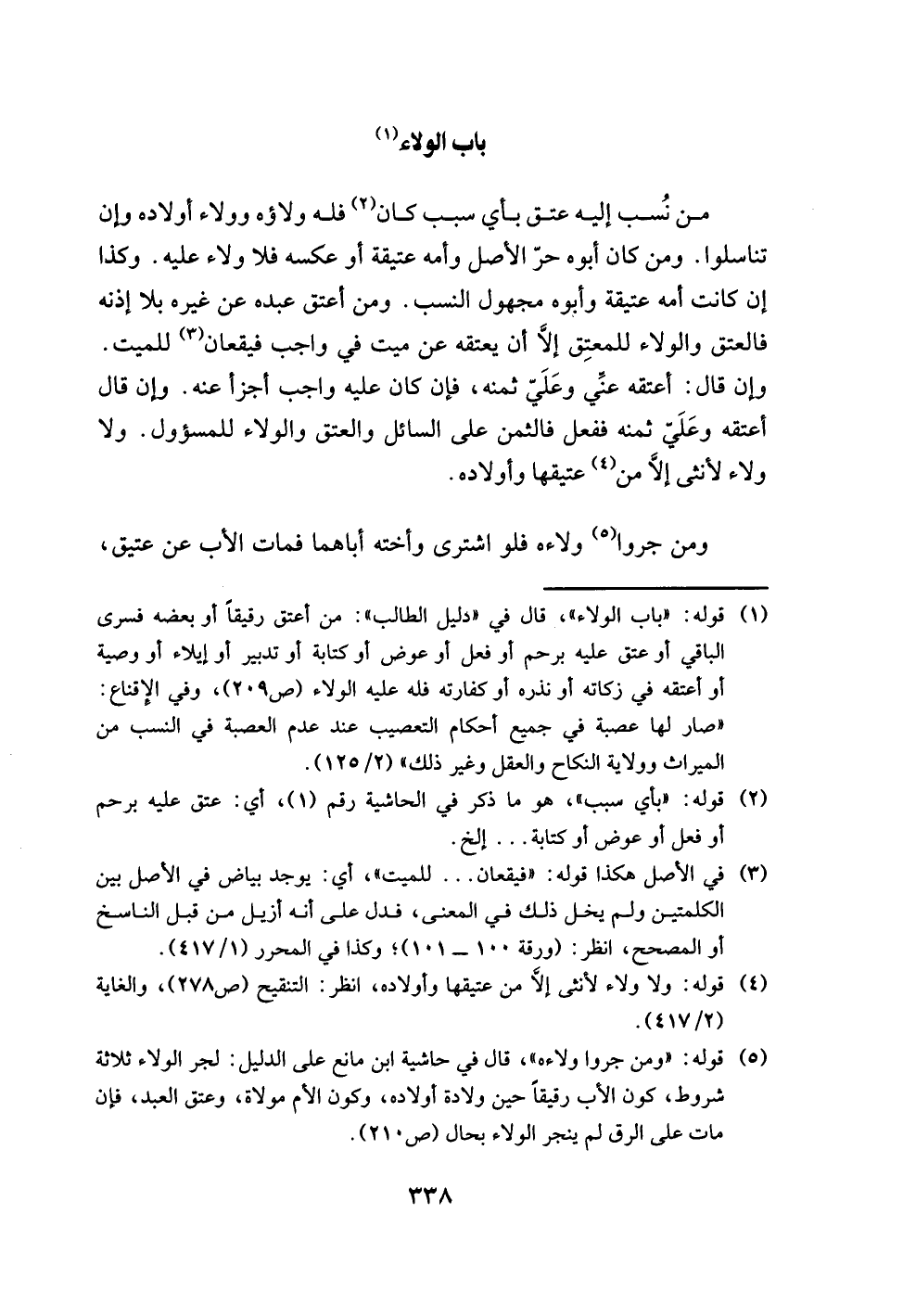 (¬4) قوله: ولا ولاء لأنثى إلَّا من عتيقها وأولاده، انظر: التنقيح (ص 278)، والغاية (2/ 417).