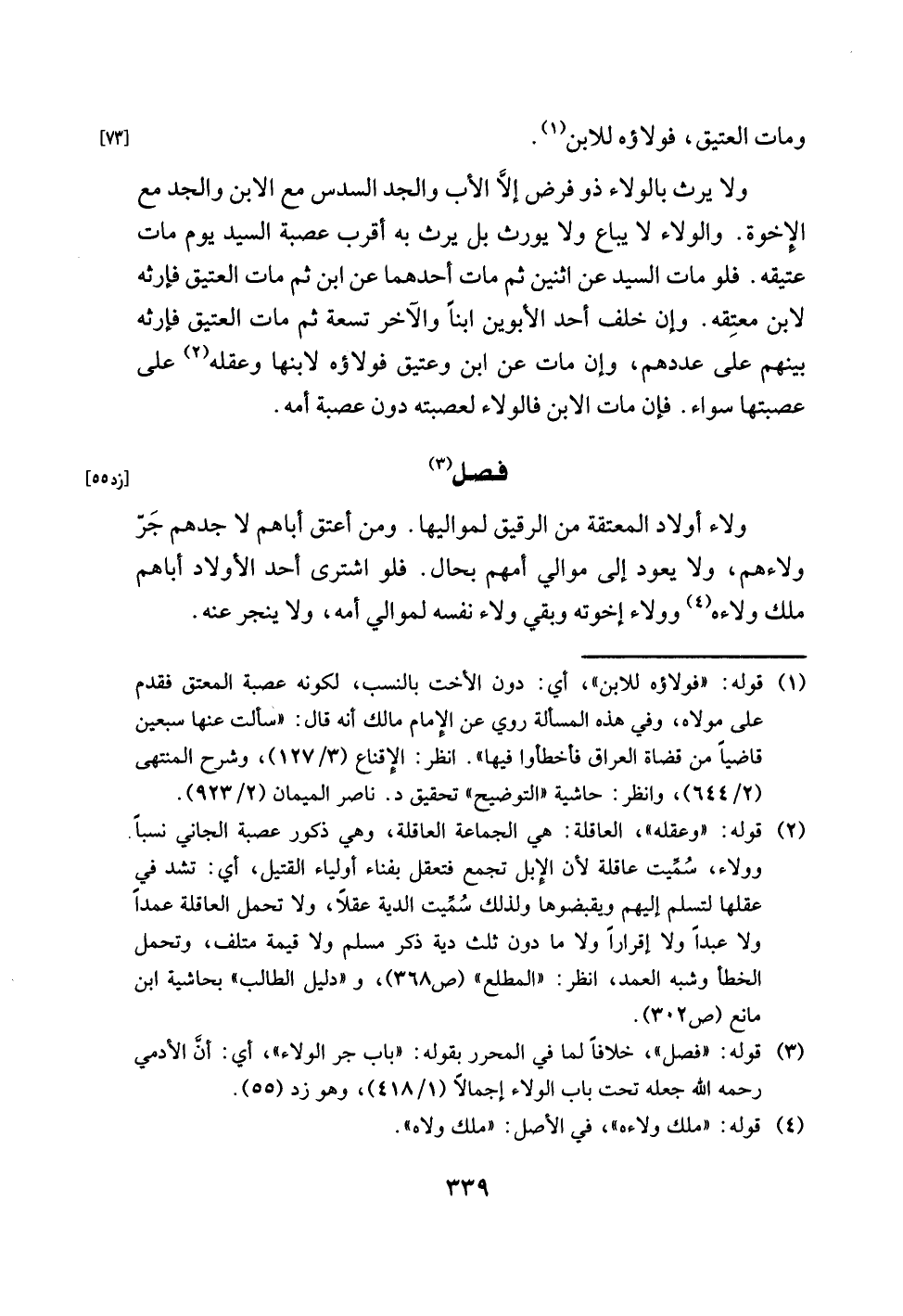 (¬3) قوله: "فصل"، خلافًا لما في المحرر بقوله: "باب جر الولاء"، أي: أنَّ الأدمي رحمه اللَّه جعله تحت باب الولاء إجمالًا (1/ 418)، وهو زد (55).
