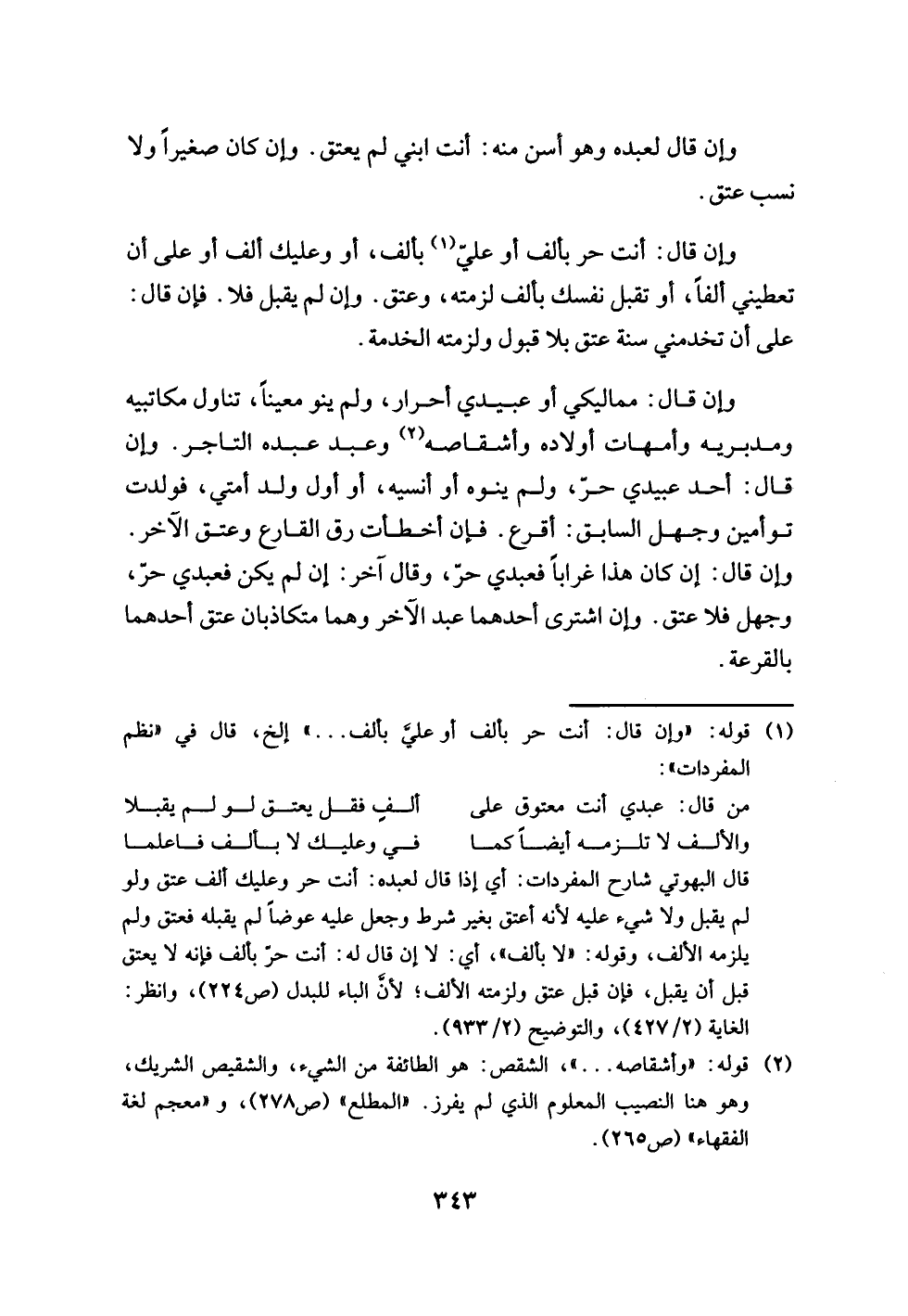 (¬1) قوله: "وإن قال: أنت حر بألف أو عليَّ بألف. . . " إلخ، قال في "نظم المفردات":