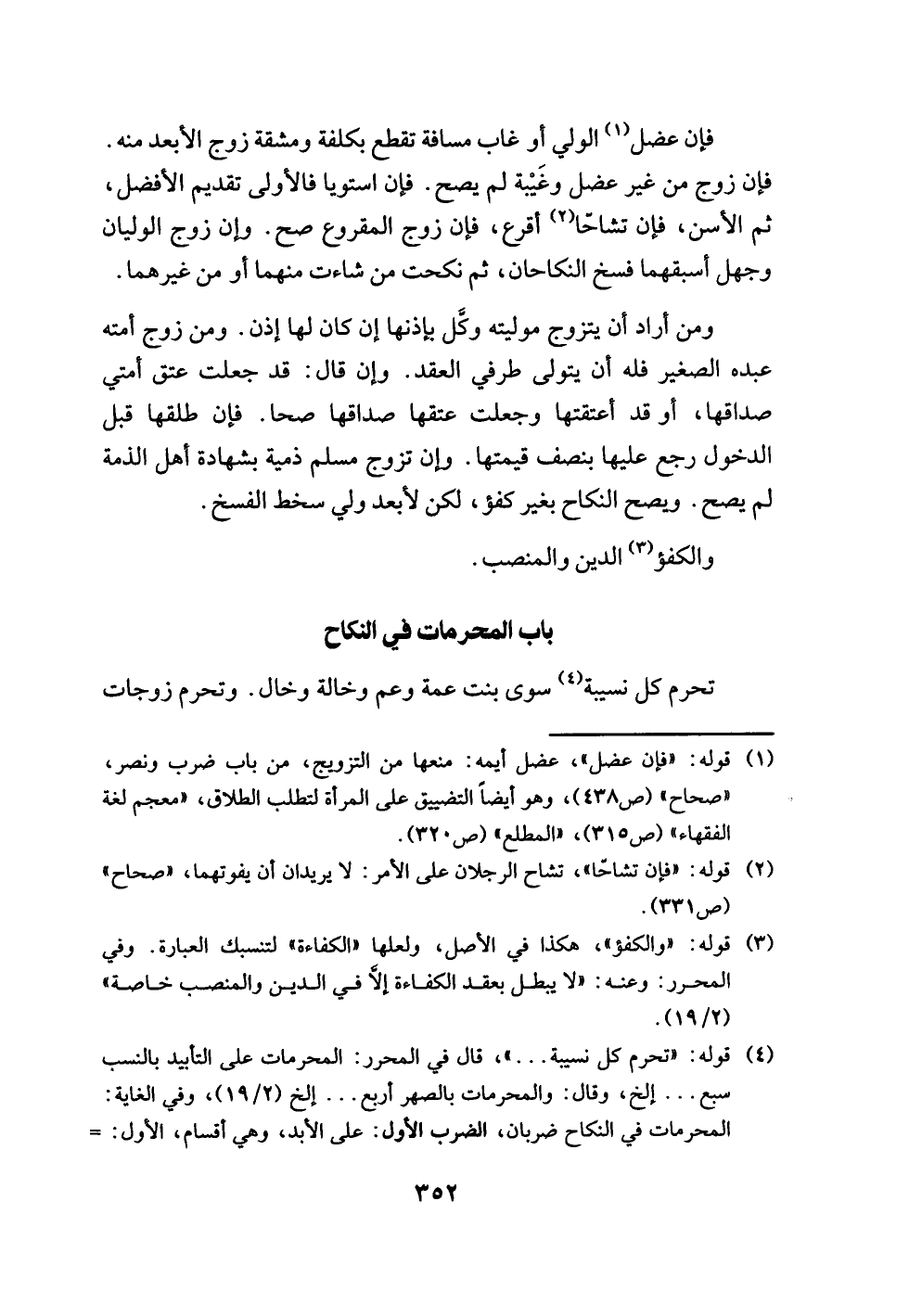 (¬4) قوله: "تحرم كل نسيبة. . . "، قال في المحرر: المحرمات على التأبيد بالنسب سبع. . . إلخ، وقال: والمحرمات بالصهر أربع. . . إلخ (2/ 19)، وفي الغاية: المحرمات في النكاح ضربان، الضرب الأول: على الأبد، وهي أقسام، الأول: =