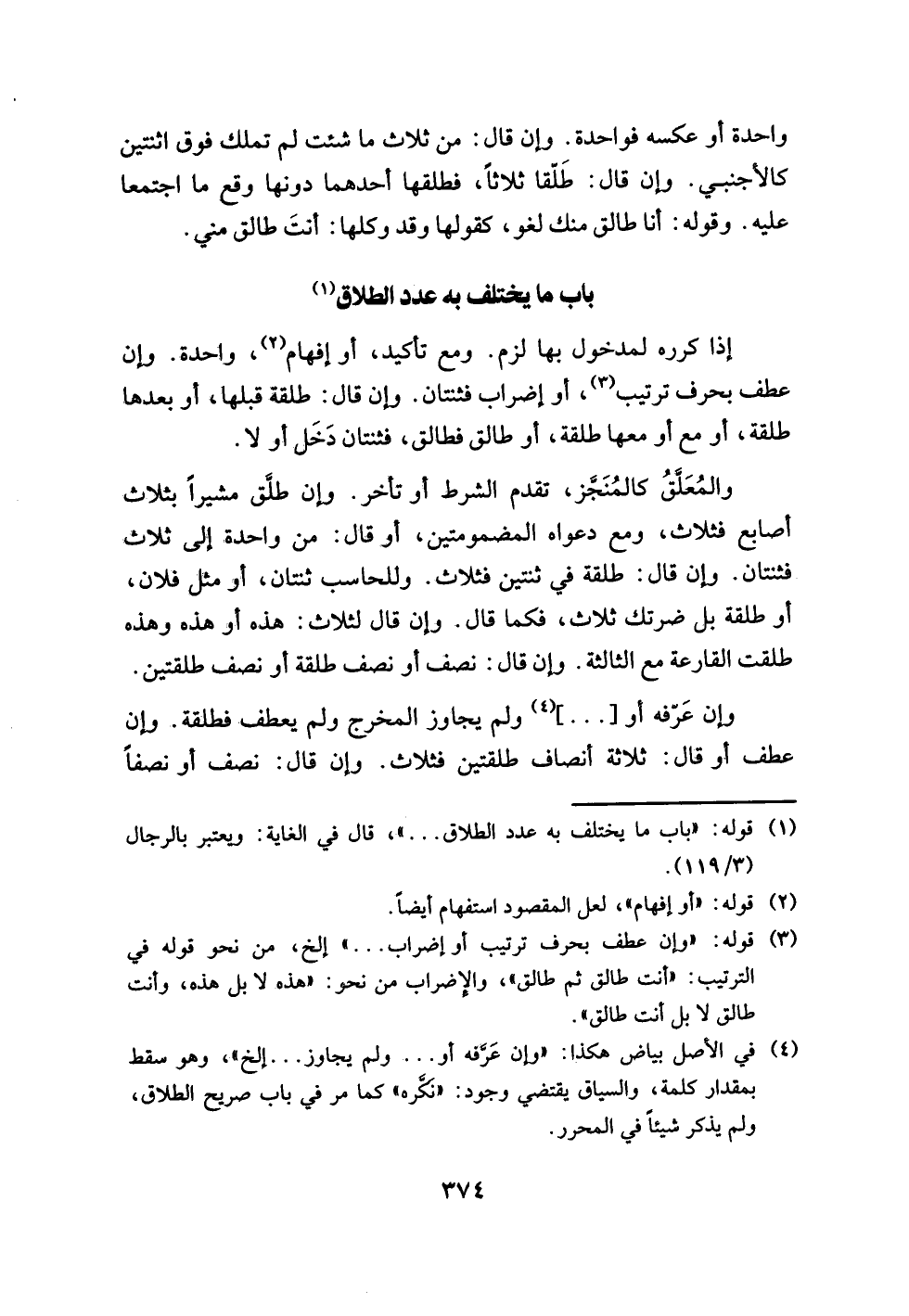 (¬4) في الأصل بياض هكذا: "وإن عَرفه أو. . . ولم يجاوز. . . إلخ"، وهو سقط بمقدار كلمة، والسياق يقتضي وجود: "نكره" كما في باب صريح الطلاق، ولم يذكر شيئًا في المحرر.