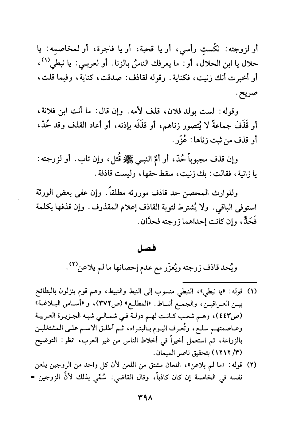 (¬1) قوله: "يا نبطي"، النبطي منسوب إلى النبط والنبيط، وهم قوم ينزلون بالبطائح بين العراقيين، والجمع أنباط. "المطلع" (ص 372)، و"أساس البلاغة" (ص 443)، وهم شعب كانت لهم دولة في شمالي شبه الجزيرة العربية وعاصمتهم سلع، وتُعرف اليوم بالبتراء، ثم أطلق الاسم على المشتغلين بالزراعة، ثم استعمل أخيرًا في أخلاط الناس من غير العرب، انظر: التوضيح (3/ 1212) بتحقيق ناصر الميمان.