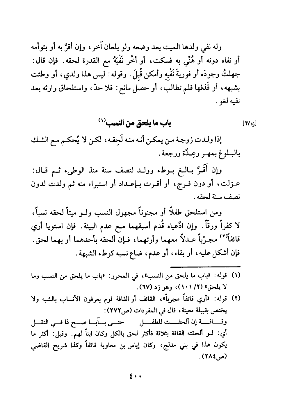 (¬1) قوله: "باب ما يلحق من النسب"، في المحرر: "باب ما يلحق من النسب وما لا يلحق" (2/ 101)، وهو زد (67).