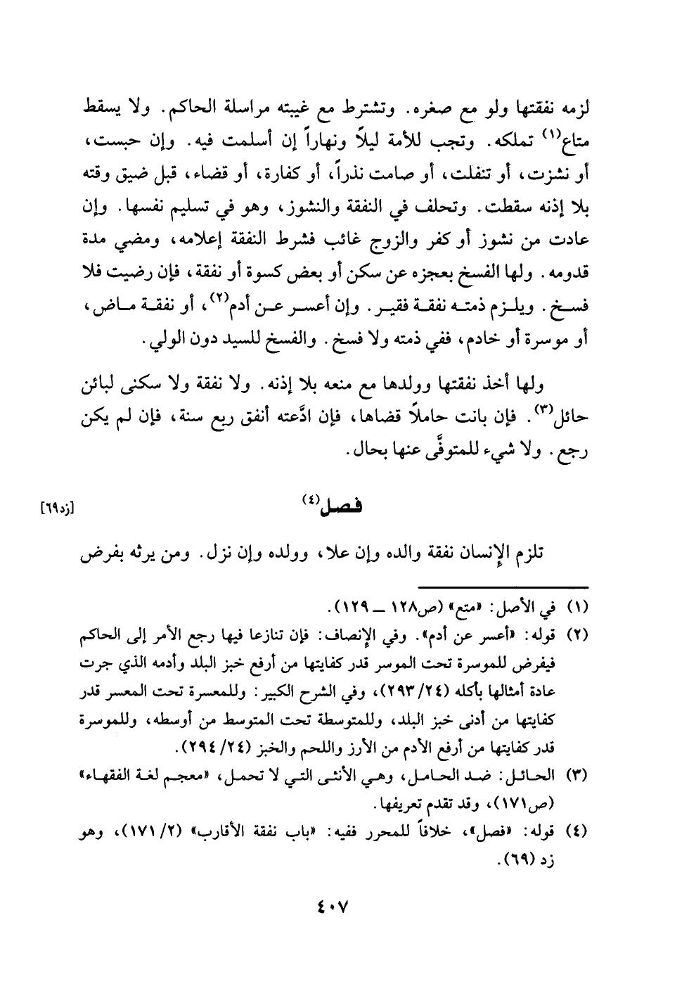 (¬4) قوله: "فصل"، خلافًا للمحرر ففيه: "باب نفقة الأقارب" (2/ 171)، وهو زد (69).