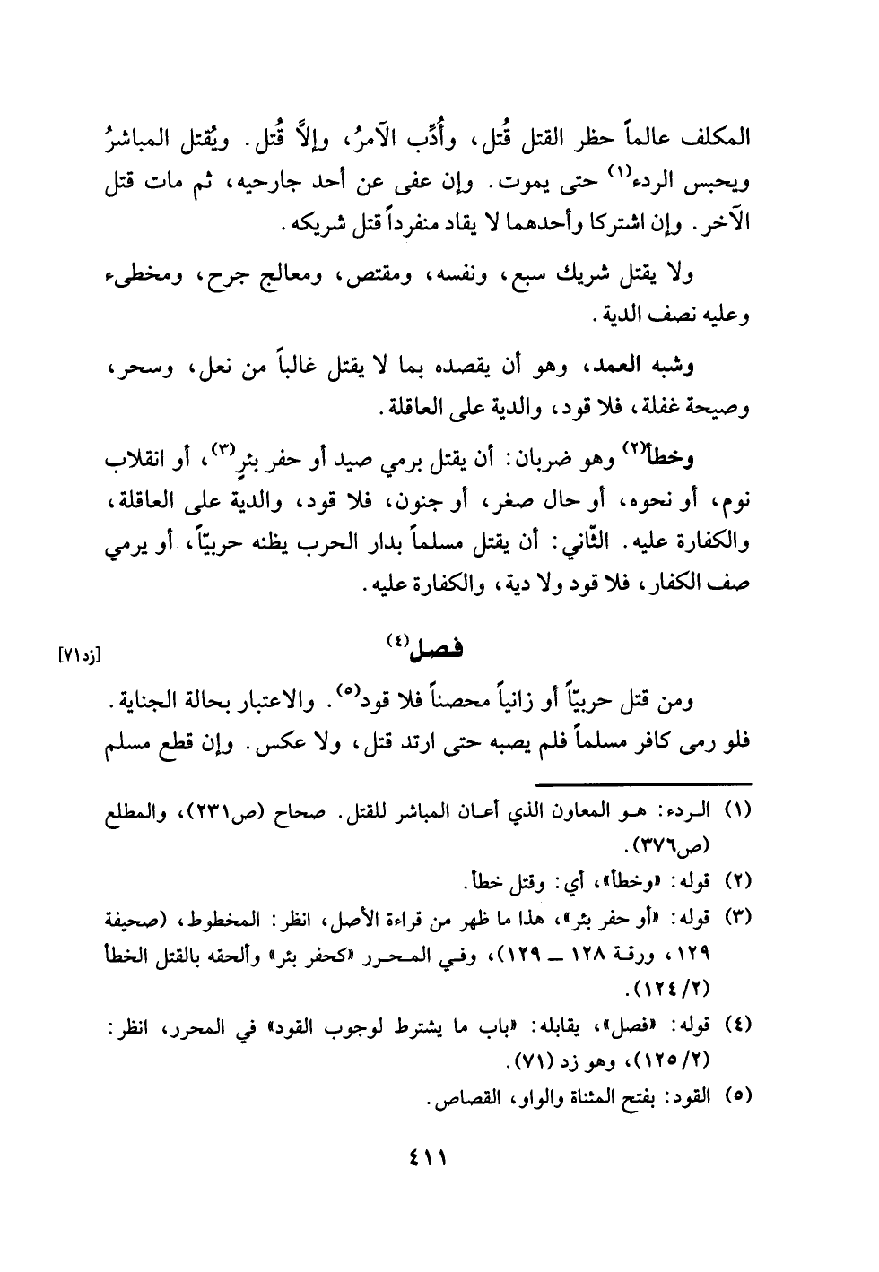 (¬4) قوله: "فصل"، يقابله: "باب ما يشرط لوجوب القود" في المحرر، انظر: (2/ 125)، وهو زد (71).