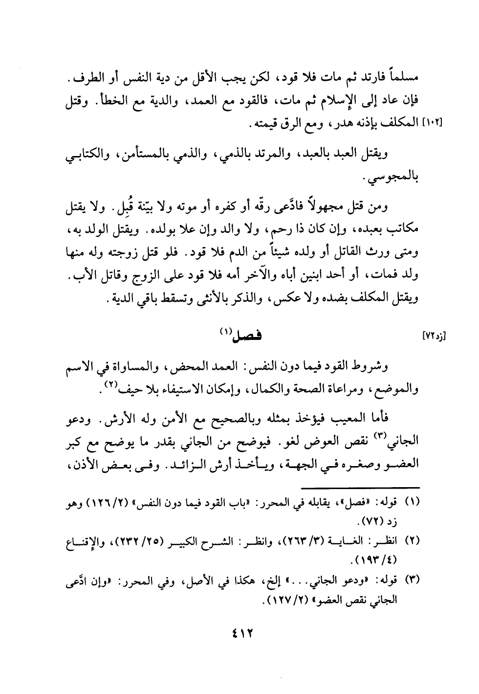 (¬1) قوله: "فصل"، يقابله في المحرر: "باب القود فيما دون النفس" (2/ 126) وهو زد (72).
