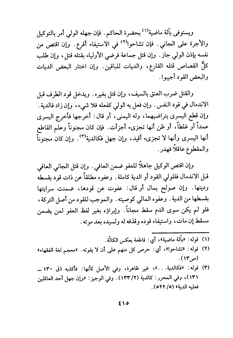 وإن اقتص الوكيل جاهلًا للعفو ضمن العافي. وإن قتل الجاني العافي قبل الاندمال فللولي القود أو الدية كاملة. وعفوه مطلقًا عن ذات قود بقسطه وديتها. وإن صولح بمال أو قال: عفوت عن قودها، ضمنت سرايتها بقسطها من الدية. وعفوه المالي كوصيته. والموجب للقود من أصل التركة، فلو لم يكن سوى الدم سقط مجانًا. وإبراؤه بغير لفظ العفو لمن يضمن مسقط إن مات، واستيفاء قوده وقذفه له ولسيده بعد موته.
