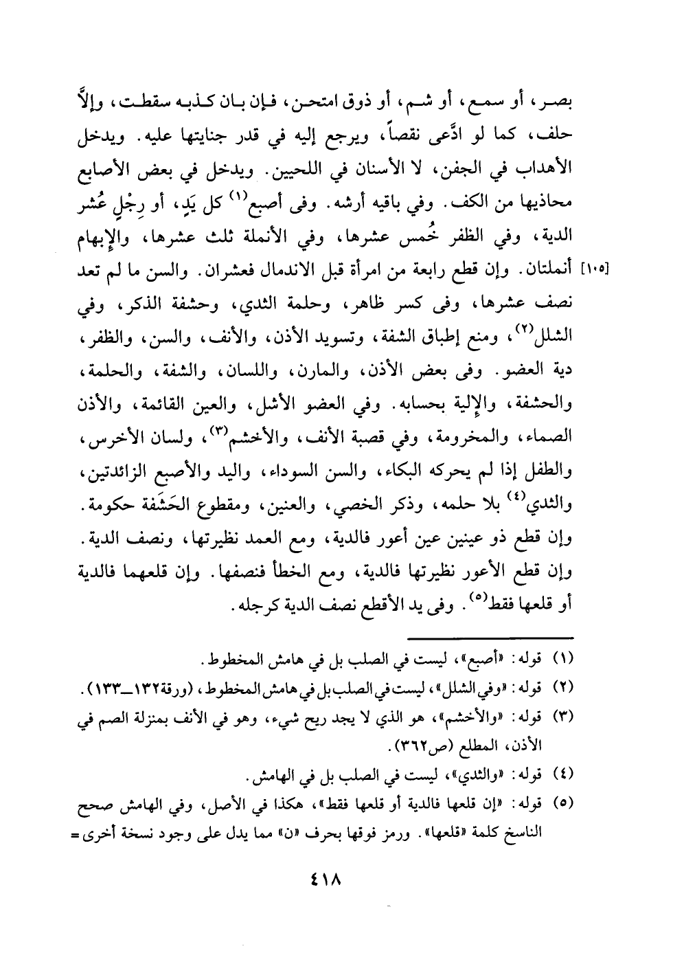 (¬2) قوله: "وفي الشلل"، ليست في الصلب بل في هامش المخطوط، (ورقة 132 - 133).