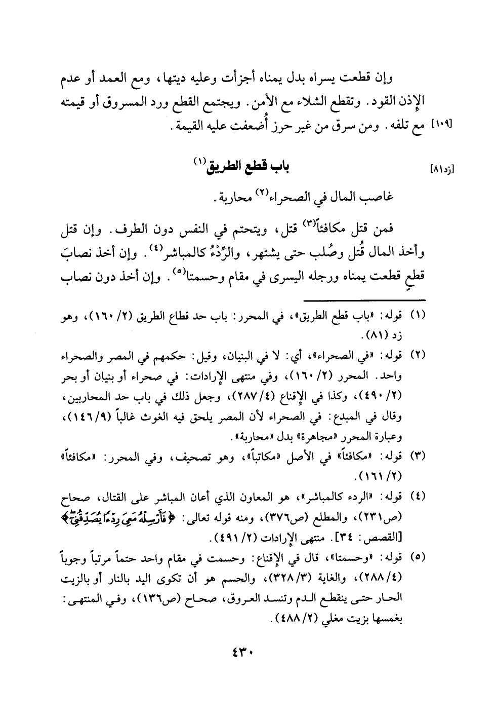 (¬1) قوله: "باب قطع الطريق"، في المحرر: باب حد قطاع الطريق (2/ 165)، وهو زد (81).