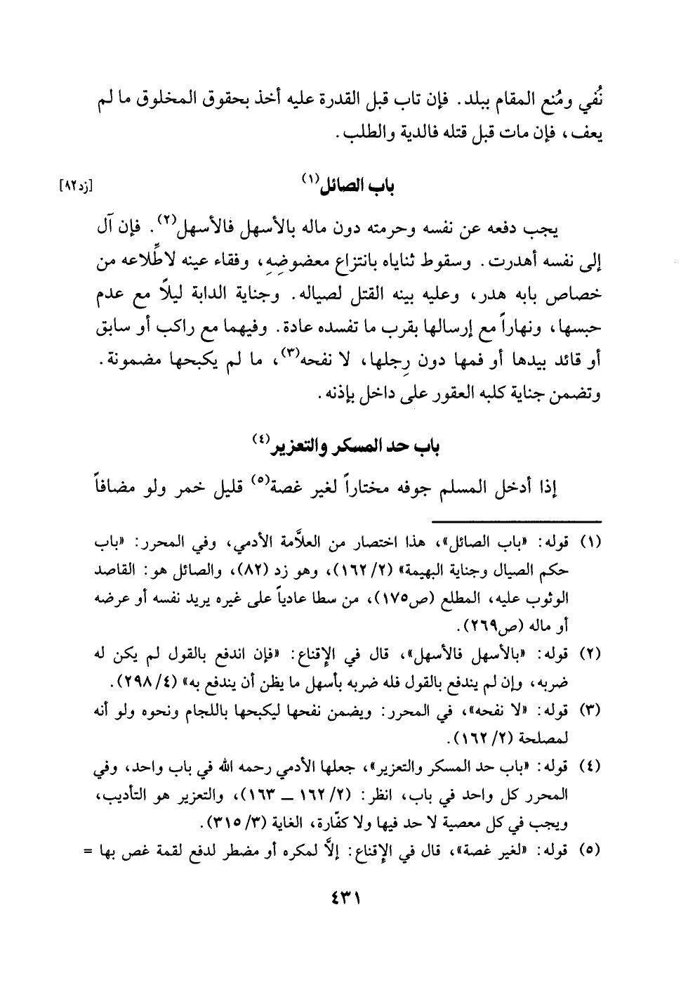(¬4) قوله: "باب حد المسكر والتعزير"، جعلها الأدمي رحمه اللَّه في باب واحد، وفي المحرر كل واحد في باب، انظر: (2/ 162 - 163)، والتعزير هو التأديب، ويجب في كل معصية لا حد فيها ولا كفّارة، الغاية (3/ 315).