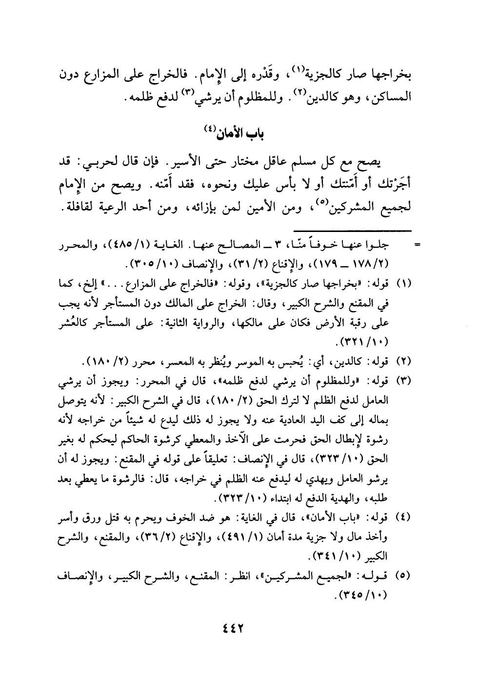 (¬4) قوله: "باب الأمان"، قال في الغاية: هو ضد الخوف ويحرم به قتل ورق وأسر وأخذ مال ولا جزية مدة أمان (1/ 491)، والإِقناع (2/ 36)، والمقنع، والشرح الكبير (10/ 341).
